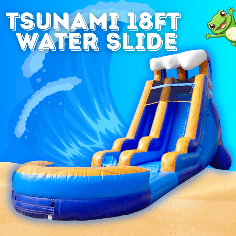 Make a big splash with the Tsunami 18ft — a towering, 18-foot inflatable slide that delivers heart-pounding thrills and unforgettable photos. Built for backyard parties, and festivals, this eye-catching attraction features a steep climb and a fast ride down into a safe landing area, giving riders the rush of a wave without the ocean. Its generous height makes it exciting for teens and adults while still accommodating younger guests under supervision. Durable, easy-to-clean material and secure anchoring points mean reliable performance through event after event. Perfect when you want a dramatic centerpiece that keeps guests talking and keeps the fun flowing.